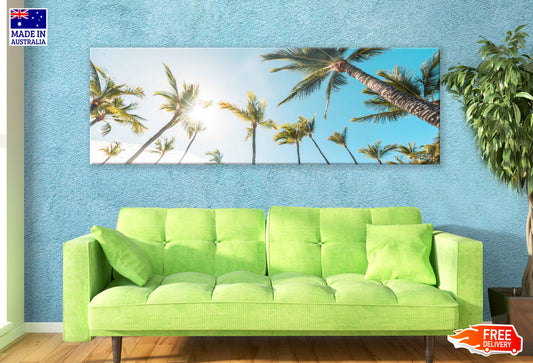 Panoramic Canvas Palm Trees with Sky View Photograph High Quality 100% Australian Made Wall Canvas Print Ready to Hang