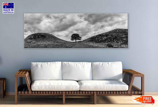 Panoramic Canvas Alone Tree Hill B&W View Photograph High Quality 100% Australian Made Wall Canvas Print Ready to Hang