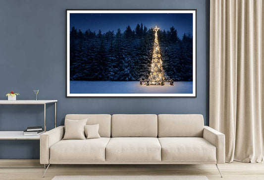 Christmas Tree on Snow at Night View Photograph Home Decor Premium Quality Poster Print Choose Your Sizes