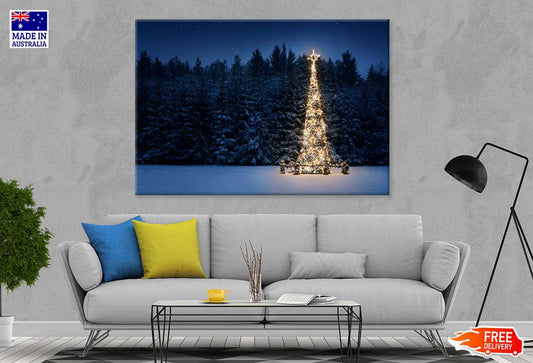 Christmas Tree on Snow at Night Photograph Print 100% Australian Made