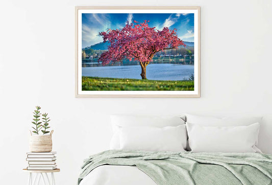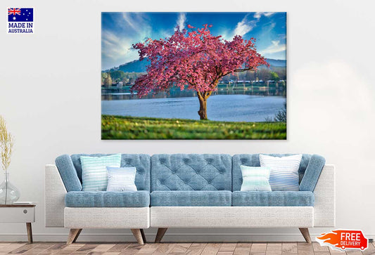 Pink Blossom Tree near Lake View Photograph Print 100% Australian Made