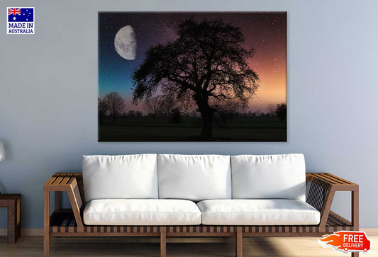 Alone Tree with Moon Sky Scenery Photograph Print 100% Australian Made