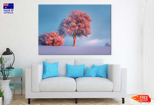 Snow Trees on Pink Sunset Scenery Photograph Print 100% Australian Made