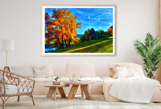 Autumn Tree & House Oil Painting Home Decor Premium Quality Poster Print Choose Your Sizes
