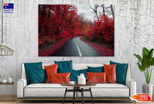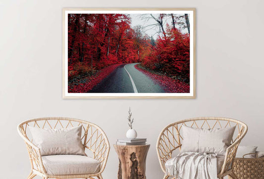 Red Autumn Trees & Road View Photograph Print 100% Australian Made