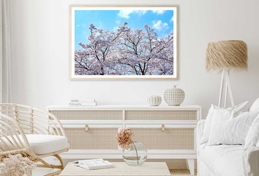 White Sakura Tree & Blue Sky View Photograph Home Decor Premium Quality Poster Print Choose Your Sizes