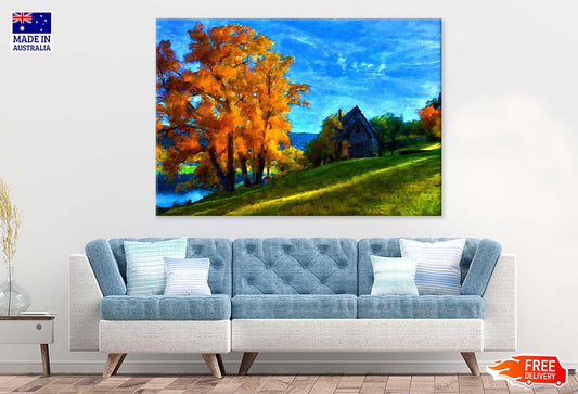 Autumn Tree & House Oil Painting Print 100% Australian Made