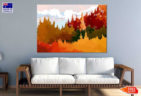 Autumn Trees & Mountains Vector Design Print 100% Australian Made
