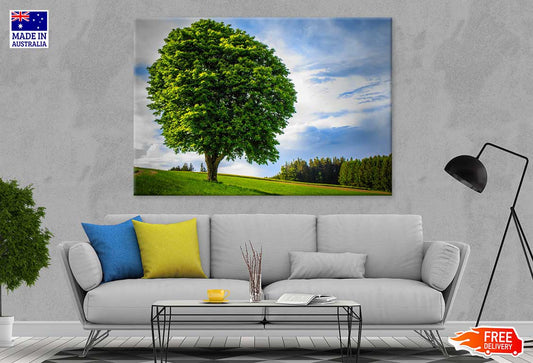 Big Green Tree on Grass Hill View Photograph Print 100% Australian Made