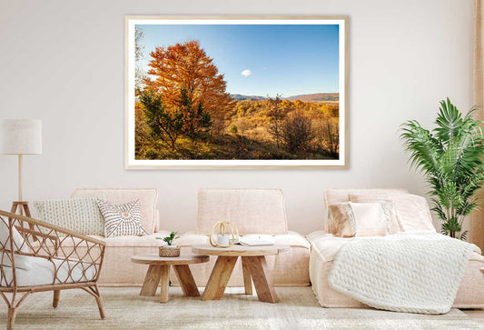 Orange Autumn Tree on Hill & Sky View Photograph Home Decor Premium Quality Poster Print Choose Your Sizes