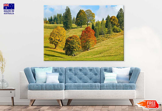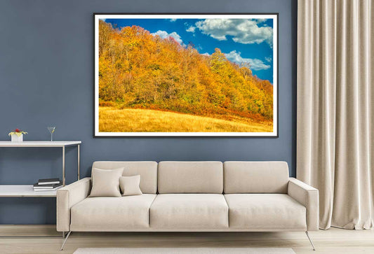 Autumn Trees Hill Cloudy Blue Sky Photograph Home Decor Premium Quality Poster Print Choose Your Sizes