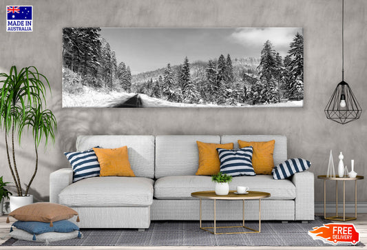 Panoramic Canvas Snow Trees B&W View Photograph High Quality 100% Australian Made Wall Canvas Print Ready to Hang