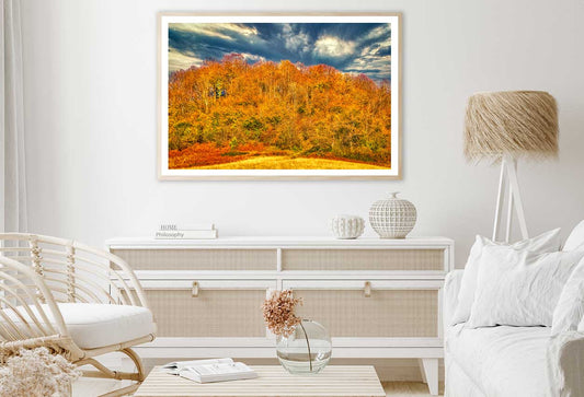 Orange Fall Forest & Cloudy Sky Photograph Home Decor Premium Quality Poster Print Choose Your Sizes