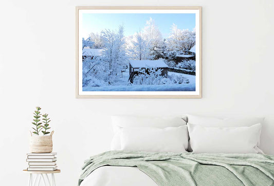 Snow Trees Covered House View Photograph Home Decor Premium Quality Poster Print Choose Your Sizes