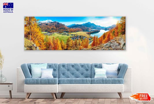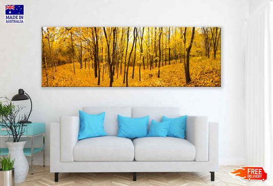 Panoramic Canvas Yellow Autumn Trees View Photograph High Quality 100% Australian Made Wall Canvas Print Ready to Hang