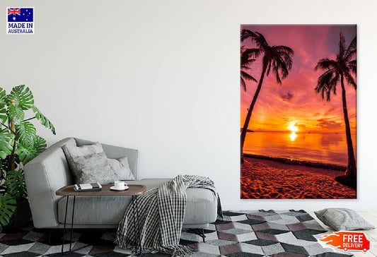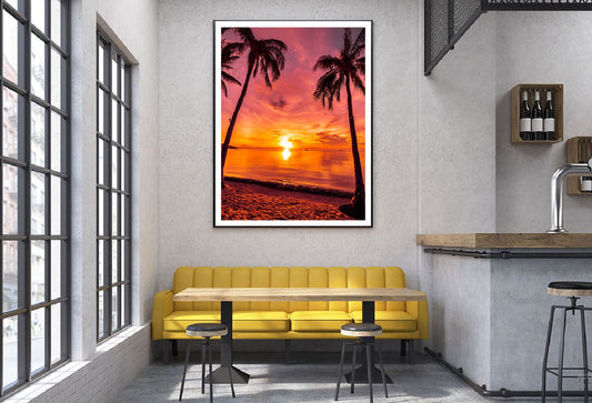 Palm Trees near Island Sea Sunset Photograph Print 100% Australian Made