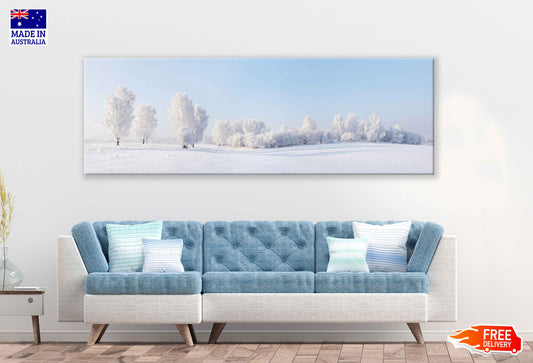 Panoramic Canvas Snow Trees on Field Scenery Photograph High Quality 100% Australian Made Wall Canvas Print Ready to Hang