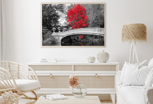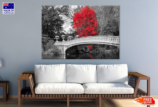 Red Autumn Tree with Bridge B&W Photograph Print 100% Australian Made