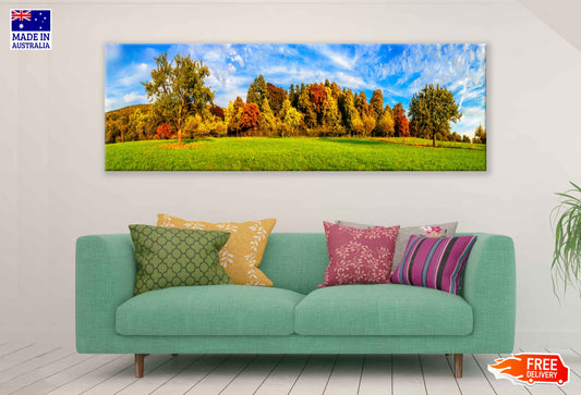 Panoramic Canvas Autumn Trees Field View Photograph High Quality 100% Australian Made Wall Canvas Print Ready to Hang