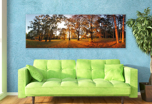 Panoramic Canvas Sunny Autumn Trees View Photograph High Quality 100% Australian Made Wall Canvas Print Ready to Hang