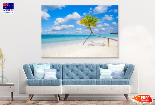 Hammock on Palm Tree & Sandy Sea Photograph Print 100% Australian Made