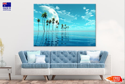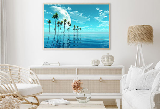 Coconut Island Under Moon & Sea View Photograph Home Decor Premium Quality Poster Print Choose Your Sizes