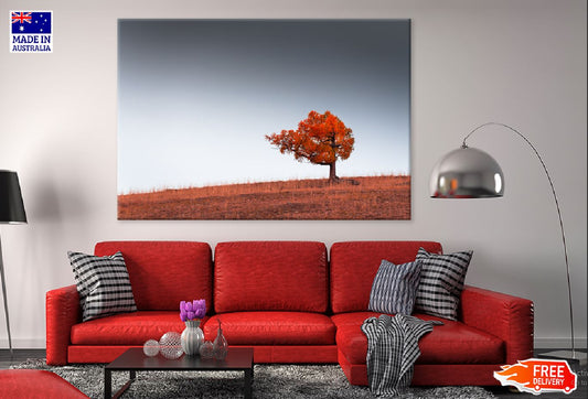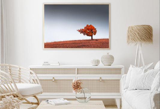 Alone Red Autumn Tree on Hill Photograph Print 100% Australian Made
