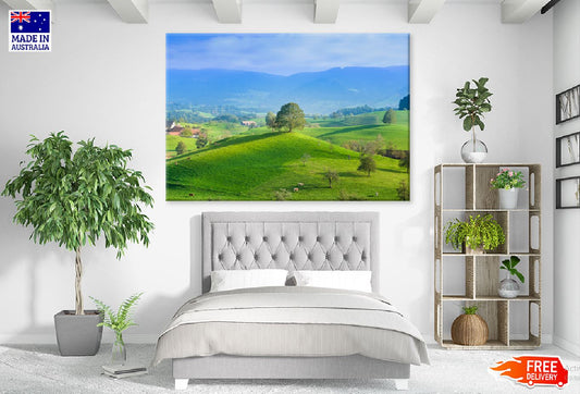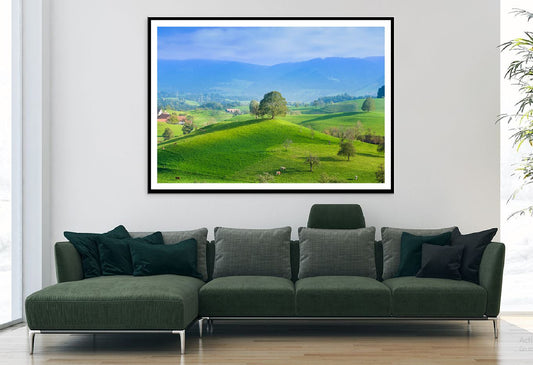 Tree on Green Grass Hill Aerial View Print 100% Australian Made