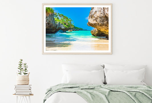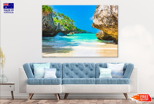 Rocky Beach with Palm Trees View Photograph Print 100% Australian Made