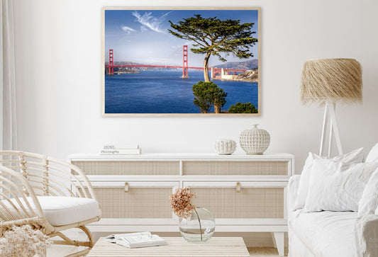 Golden Gate Bridge & Cypress Tree View Photograph Home Decor Premium Quality Poster Print Choose Your Sizes