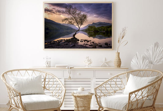 Alone Tree on Lake Sunset Scenery Photograph Home Decor Premium Quality Poster Print Choose Your Sizes