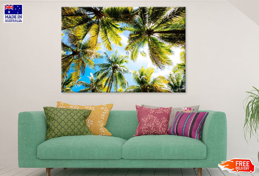 Palm Trees Bottom View & Blue Sky Photograph Print 100% Australian Made