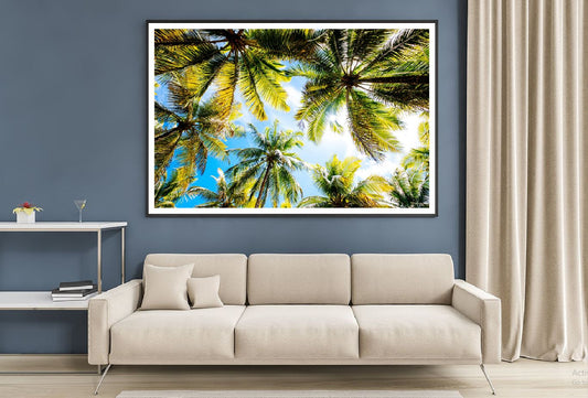 Palm Trees Bottom View & Blue Sky View Photograph Home Decor Premium Quality Poster Print Choose Your Sizes