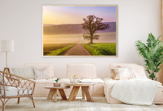 Tree on Green Grass Field Road View Photograph Home Decor Premium Quality Poster Print Choose Your Sizes