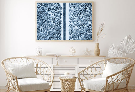 Snow Covered Fir Trees Road View Photograph Print 100% Australian Made
