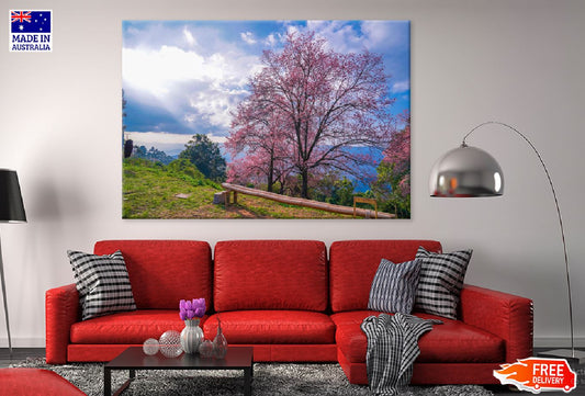Cherry Blossom Tree on Hill View Photograph Print 100% Australian Made