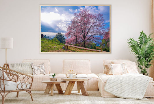 Cherry Blossom Tree on Hill View Photograph Home Decor Premium Quality Poster Print Choose Your Sizes