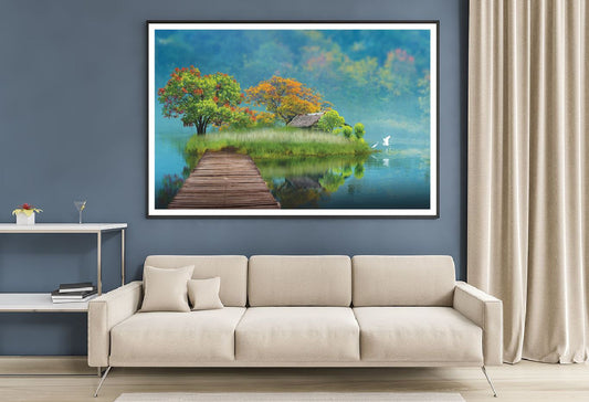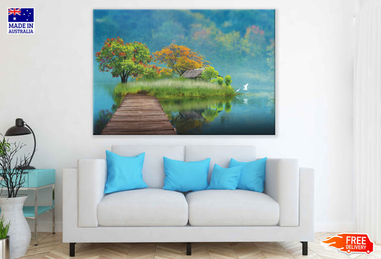 House & Trees on Lake View Photograph Home Decor Premium Quality Poster Print Choose Your Sizes