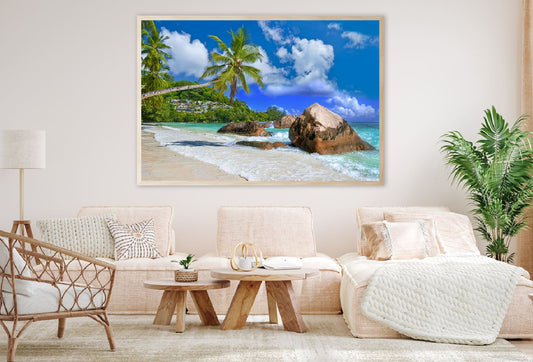 Rocks on Sandy Beach & Palm Trees View Photograph Print 100% Australian Made