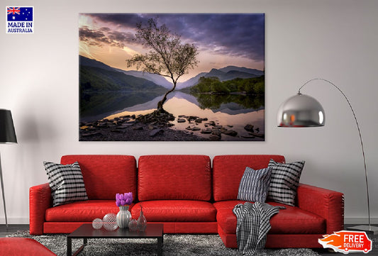 Alone Tree on Lake Sunset Scenery Photograph Print 100% Australian Made
