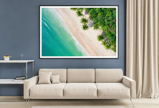 Blue Sea with Palm Trees Aerial View Photograph Home Decor Premium Quality Poster Print Choose Your Sizes