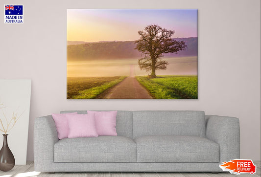 Tree on Green Grass Field Road Photograph Print 100% Australian Made