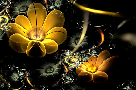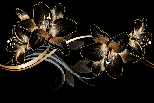 Wallpaper Murals Peel and Stick Removable Black & Gold Floral Abstract Design High Quality