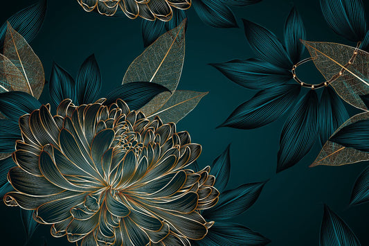 Wallpaper Murals Peel and Stick Removable Blue & Gold Floral Abstract Design High Quality