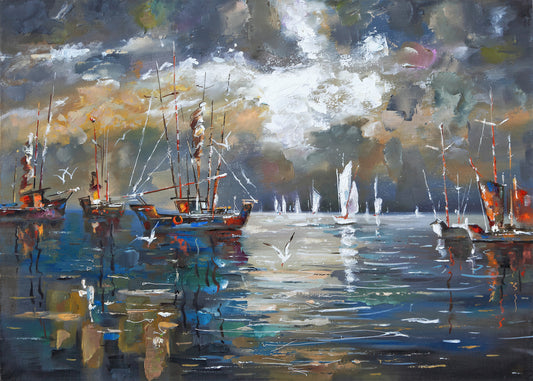 Wallpaper Murals Peel and Stick Removable Boats on Beach Painting High Quality