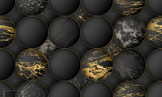 Wallpaper Murals Peel and Stick Removable Black & Gold Circle Abstract Design High Quality