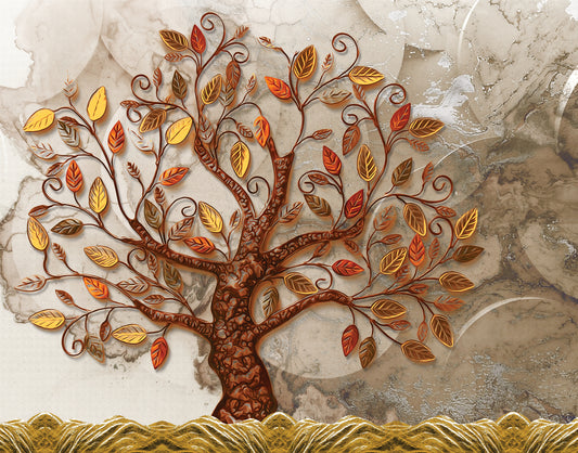 Wallpaper Murals Peel and Stick Removable Gold Floral Tree Design High Quality