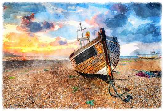 Wallpaper Murals Peel and Stick Removable Boat on Beach Watercolor Painting High Quality
