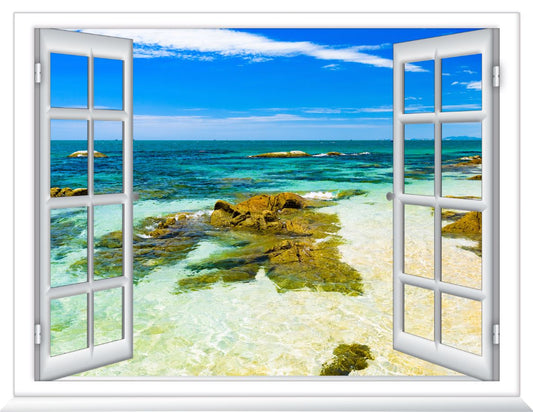 Wallpaper Murals Peel and Stick Removable Stunning Beach View through Window High Quality