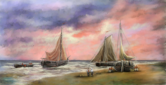 Wallpaper Murals Peel and Stick Removable Boats on Beach Watercolor Painting High Quality